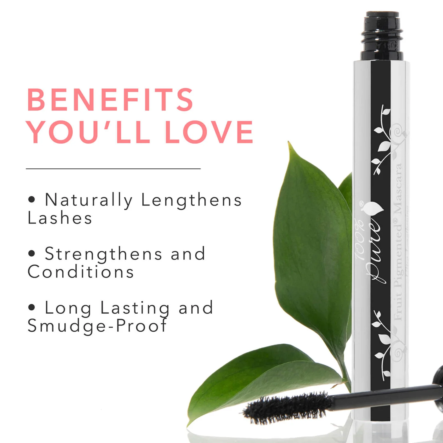 100% Pure Fruit Pigmented Ultra Lengthening Mascara gives you lush, full lashes with all-natural ingredients. Provitamin B5, vitamin E and oat and wheat proteins improve and produce healthier lashes. The gentle formula is smudge-proof and is safe for sensitive eyes.