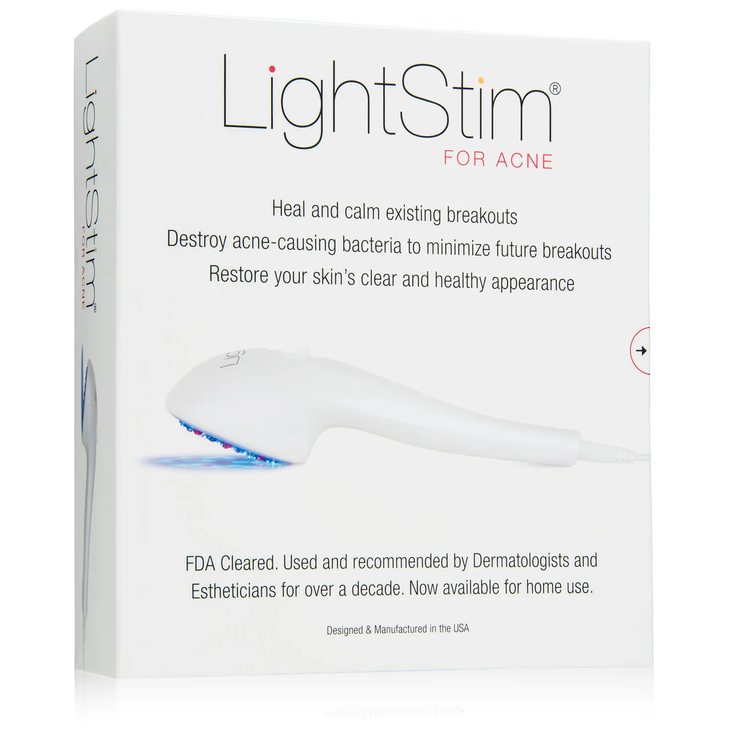 LightStim for Acne helps calm and heal existing blemishes and reduces future breakouts by eliminating acne-causing bacteria. The non-invasive therapy uses UV-free blue and red lights that work together to destroy bacteria and reduce inflammation without damaging or drying healthy skin. The light emits a gentle warmth in 3-minute treatments that may be used everywhere with zero recovery time. Regain healthy, radiant skin and banish blemishes to the past.